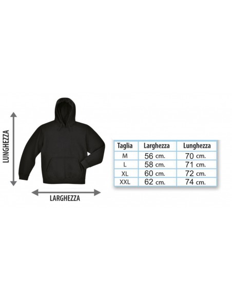 Le caratteristiche dell’indumento in questione sono quelle tipiche di un prodotto di elevata qualità: e' realizzata in tessuto morbido, leggero e resistente, viene proposta in modello unisex nero con tasche a canguro ed è lavabile a trenta gradi in lavatrice. Il prodotto è disponibile in varie taglie, da comunicare al momento dell'ordine insieme ad il nome da stampare.
