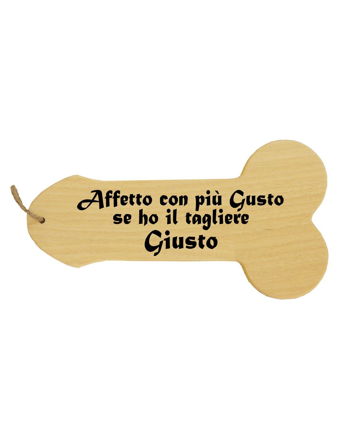 Utile per affettare diversi tipi di cibo, questo tagliere a forma di pene con al centro la scritta 'Affetto con più gusto se ho il tagliere giusto” e’ dedicato principalmente all’ affettamento di salumi oblunghi, sfilatini di pane e per poter servire in maniera un po’ ridicola, piccoli snack all’ora dell’aperitivo .