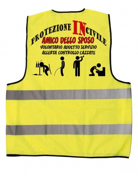 Sorprendili e regala ad ognuno di loro il dress code perfetto per questo tipo di festa, il gilet giallo della Protezione In-civile….insomma il gilet per l’amico dello sposo.
