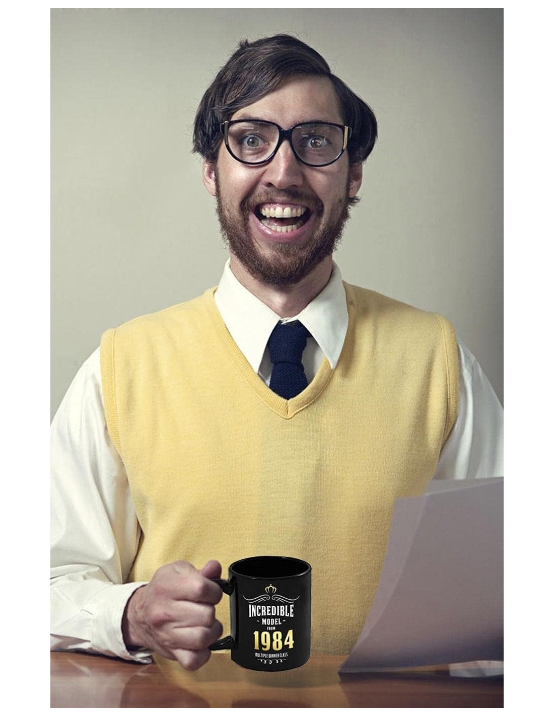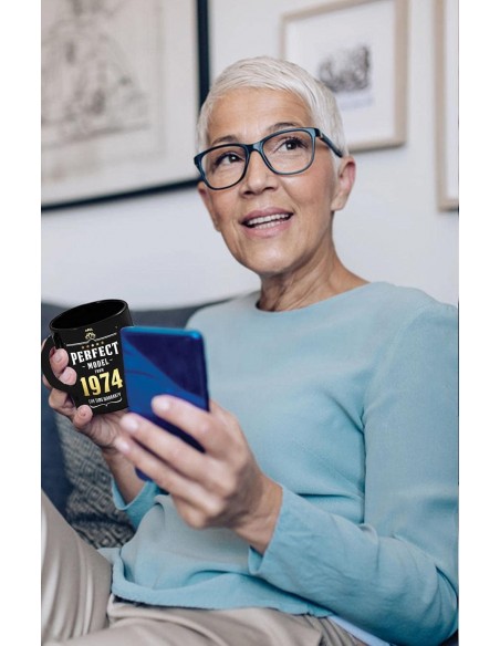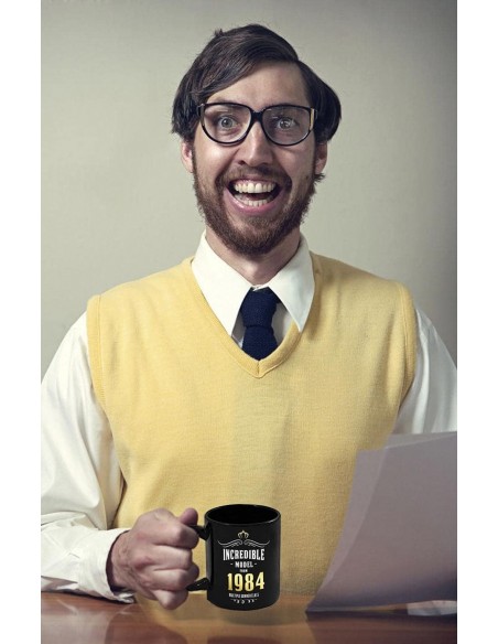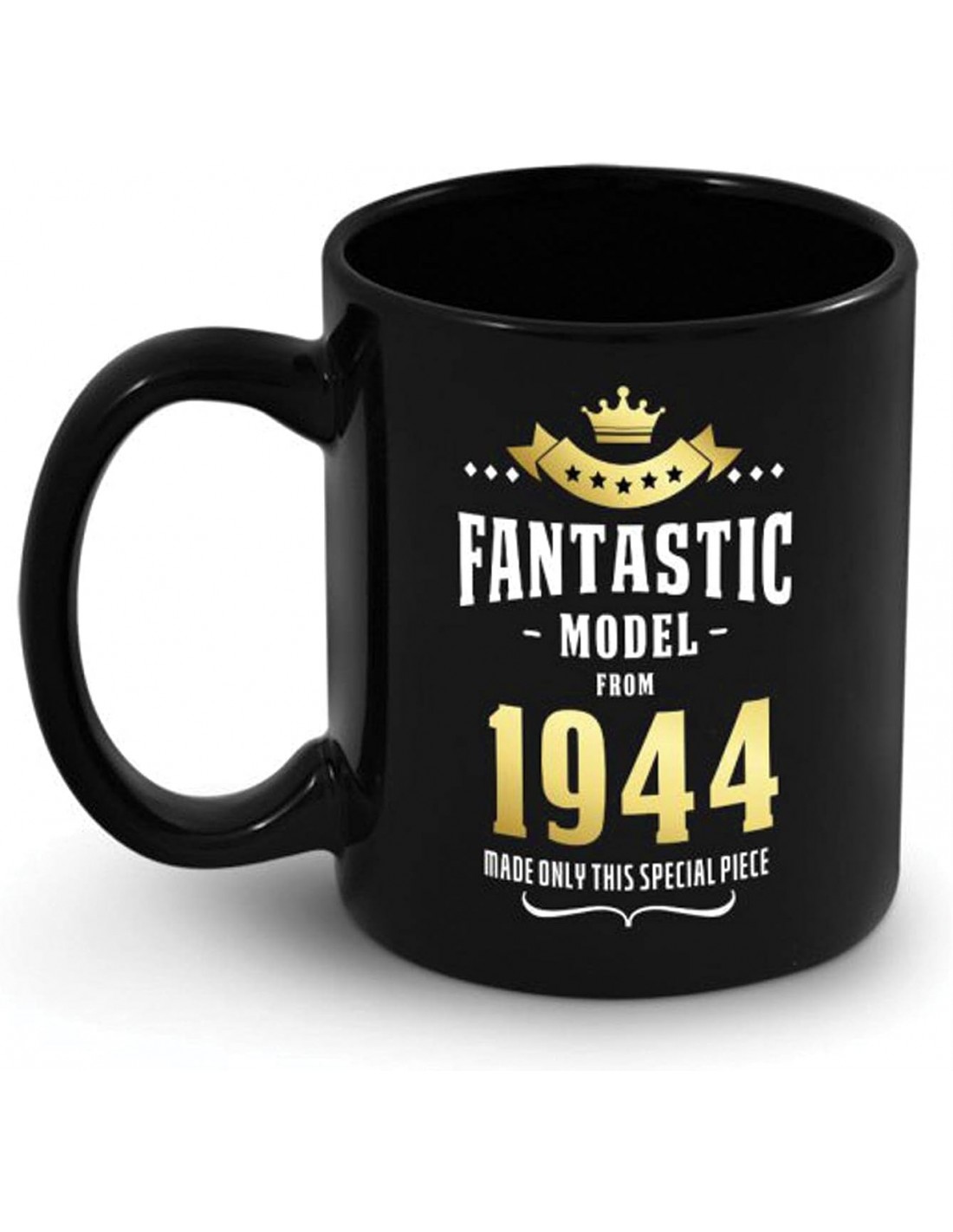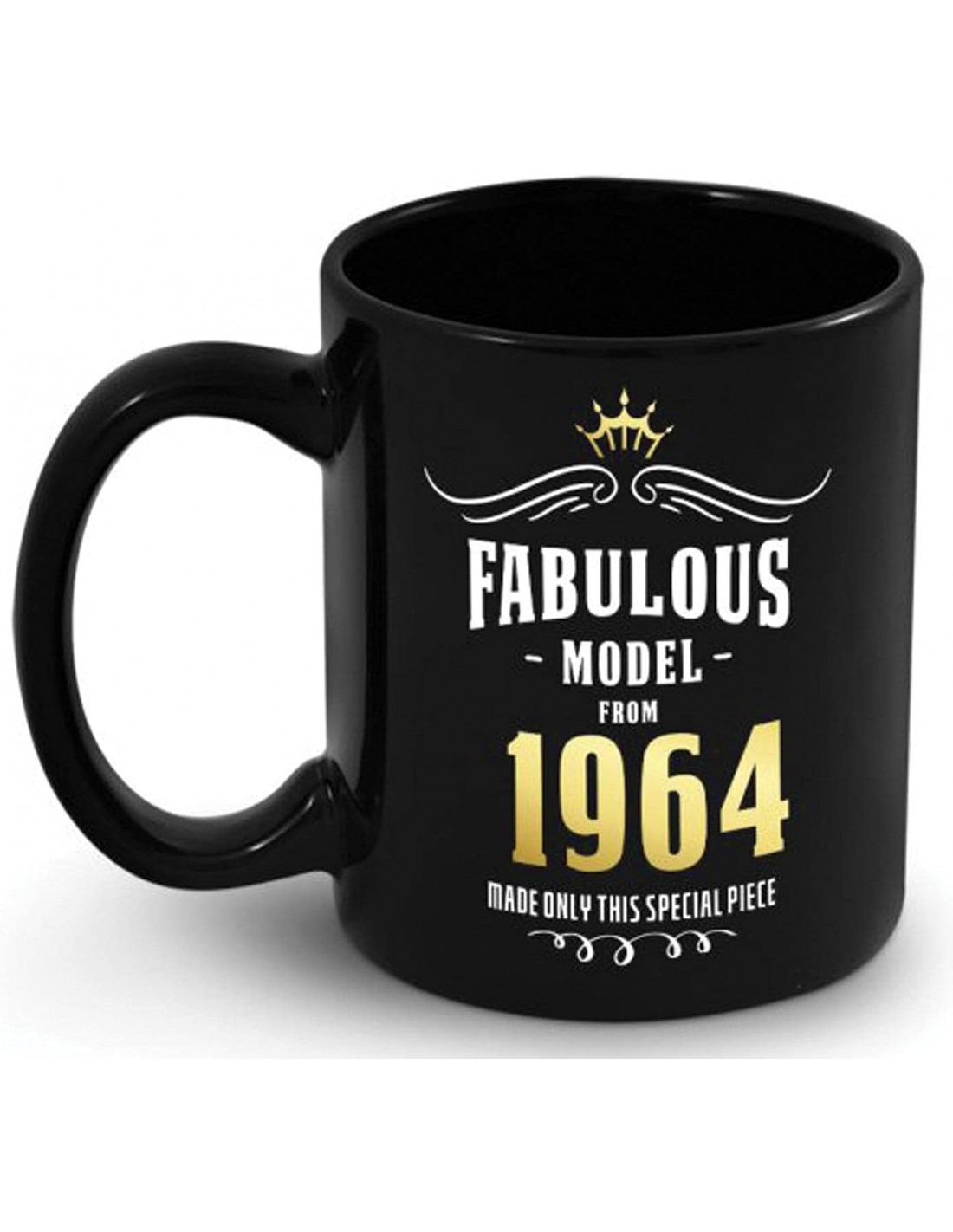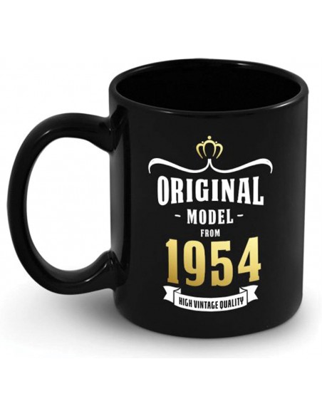 Una tazza in ceramica nera con un dorato anno di nascita, una simpatica idea regalo da fare e da ricevere.