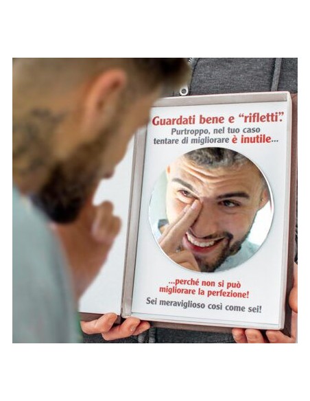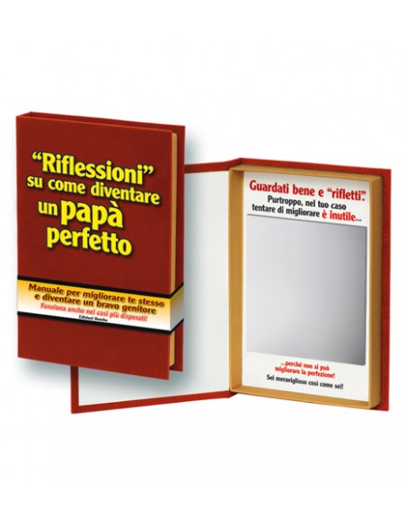 Gia’ il titolo un po’ polemico…“Riflessioni” su come diventare un perfetto Papa’, e l’aspetto un po’ enciclopedico del volume, potrebbero far sembrare questo manuale, un’ idea regalo molto seria e un po’ “pallosa” ma…all’apertura del manuale, uno specchio restituira’ l’immagine del tuo babbo che scoprira’, con un pizzico di orgoglio e divertimento che il Papa’ perfetto esiste gia’ ed e’ lui.