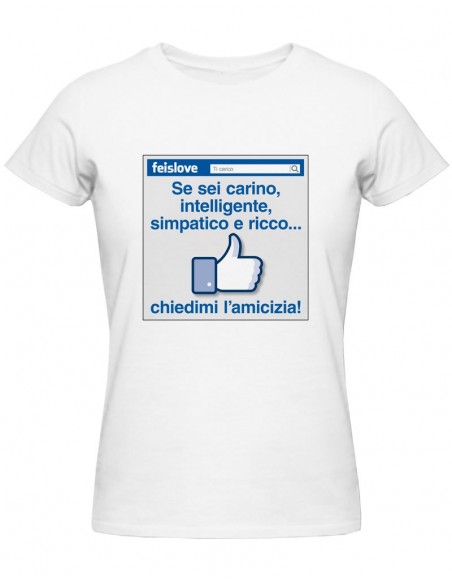 Il compleanno o una ricorrenza della tua amica che sta sempre su Facebook si avvicina? Vuoi regalarle qualcosa di simpatico e originale? Scegli la maglietta di Facebook like per lei: l'unica che riporta lo stile del social network più frequentato di sempre e non delude mai. Essa può essere indossata in qualsiasi occasione, per fare sport e in qualunque momento della giornata in cui lei può conoscere nuovi ragazzi in modo divertente.
