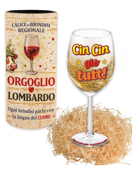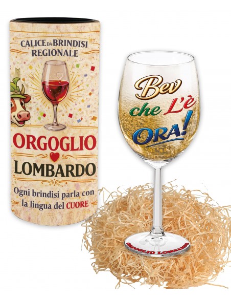 Questo calice ORGOGLIO LOMBARDO, con frase che celebra l’allegria, l’amicizia e l’orgoglio in “lingua Lombarda” con parole che risuonano come un invito a stare insieme, ridere e godersi ogni sorso.