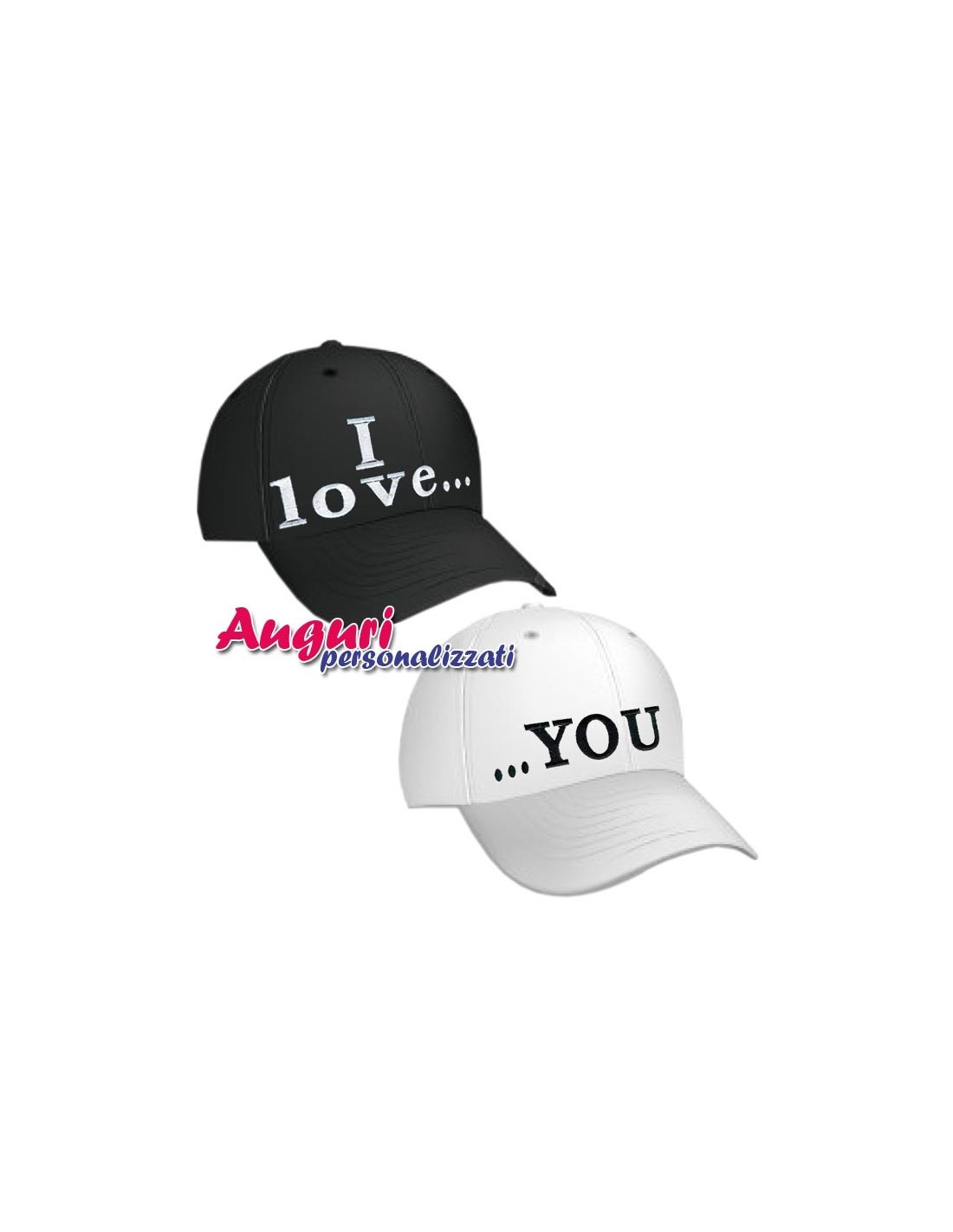 Questi due cappellini, disponibili in due colori (bianco e nero) entrambi in taglia unica ma regolabili, così da soddisfare ogni esigenza, sono due oggetti distinti, ma che in realtà rappresentano un'unica, indissolubile entità dato che la frase I Love You si forma solamente nel caso lui e lei siano vicini