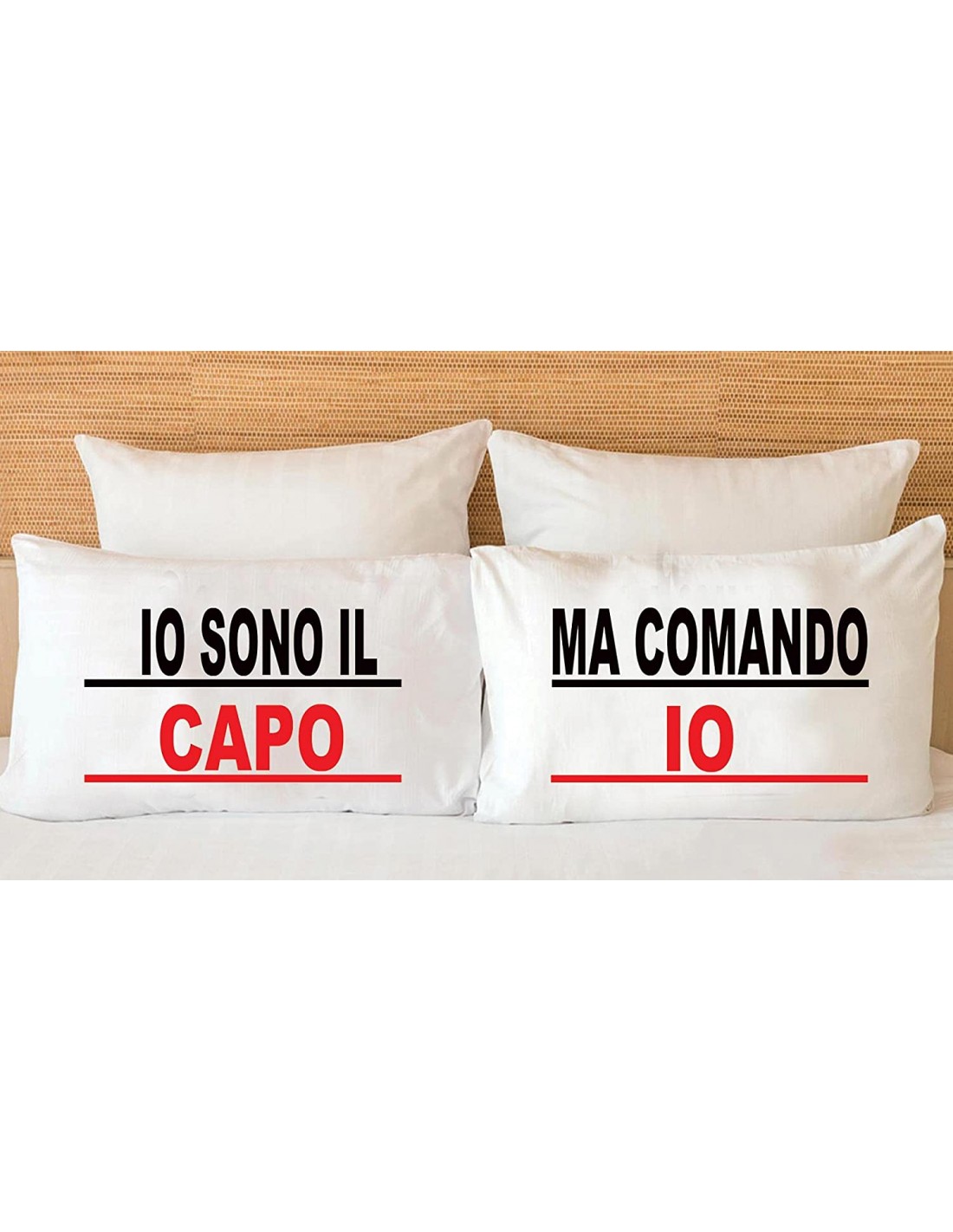 Un’idea regalo speciale come regalo di matrimonio, anniversario o semplicemente per una coppia che inizia la convivenza. Un dono spiritoso e utile per la coppia di amici in procinto di festeggiare. Fai trovare nella loro alcova questa originale coppia di guanciali…e lasciate a loro decidere chi e’ il capo e chi veramente comanda.