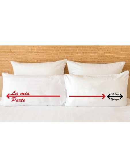 Se ritieni che il tuo partner, con i suoi continui movimenti notturni, cerchi di appropiarsi di uno spazio maggiore, per relegarti nell'angolo piu' remoto del materasso, con questa coppia di federe darai un chiaro messaggio e se gia' avete litigato per questo motivo, riuscirete a fare pace prima di appoggiare la testa su questi morbidi cuscini matrimoniali.