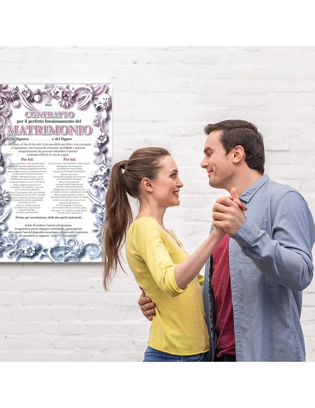 Un'idea regalo originale per una coppia di amici che sta per fare il GRANDE PASSO, questo contratto tra i due futuri sposi, con impegni, divieti, permessi, eccezioni, regole per entrambi, da firmare per accettazione