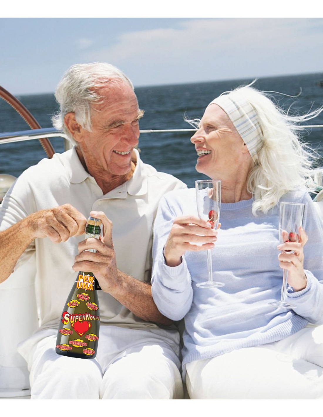 Per festeggiare in maniera spumeggiante, ecco una Bottiglia con la S maiuscola, non la classica bottiglia di vino ma la bottiglia per una SUPERNONNA