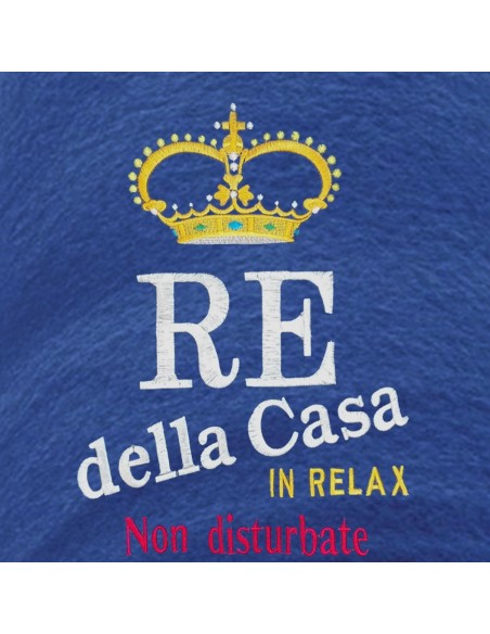 Un "caloroso" e utile Plaid Blu navy leggero ma estremamente avvolgente e morbido, con un grande ricamo a lui dedicato: "RE della Casa in relax-Non disturbare" di cm. 35 X 30, sara' un simpatico segno di grande affetto nei confronti della persona che lo ricevera', che sia: uno zio, un cugino, un nipote,il Papa', un Nonno, il Papa', un'amico, un collega, o anche il tuo Datore di lavoro.