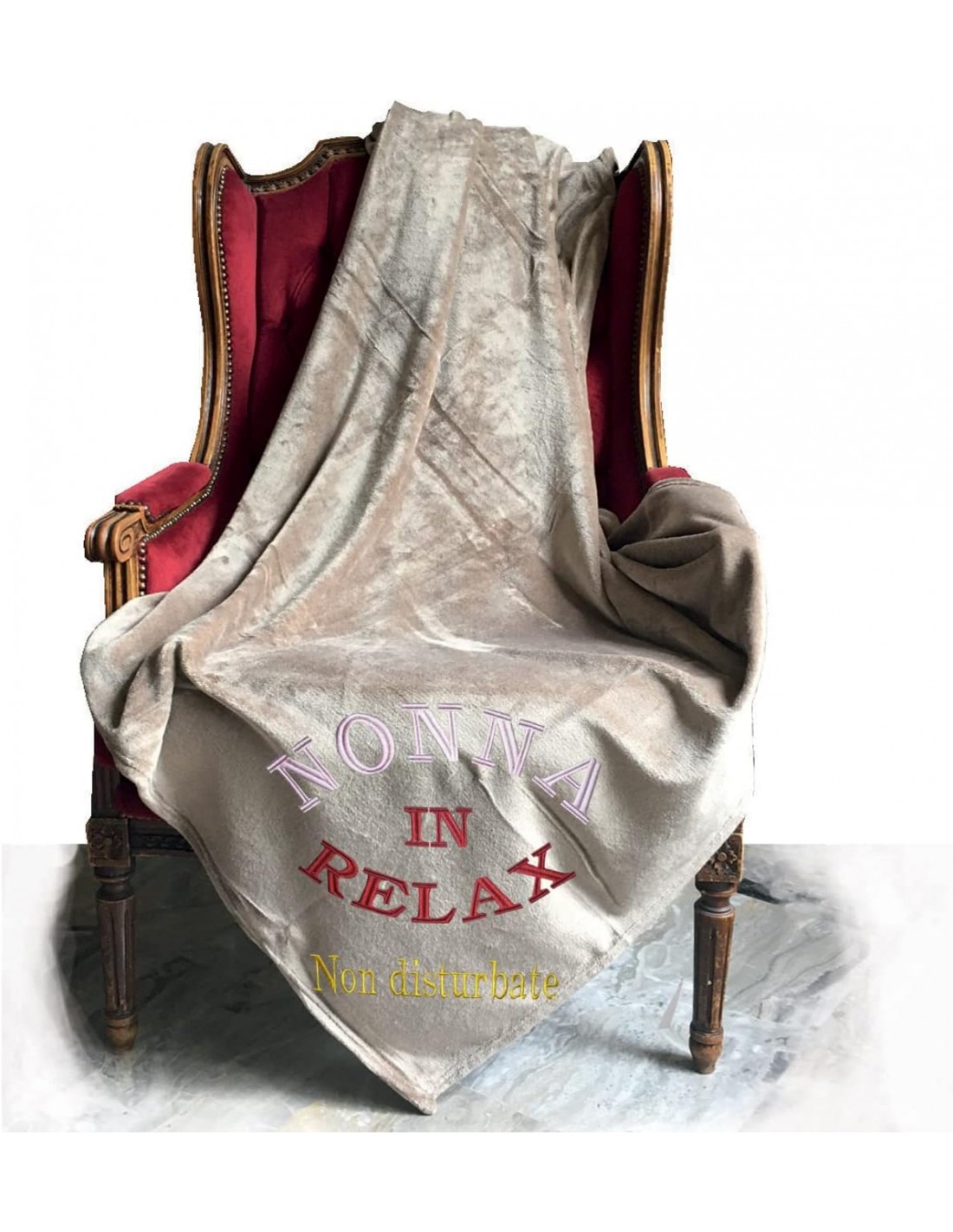 Una particolare leggera copertina con dedica ricamata Nonna in Relax-Non disturbare. Niente è più indicato, per dimostrarle tutto il tuo affetto e farti ricordare da tua Nonna, come la/il nipote preferito, solo grazie a questo regalo cosi’ originale e personale.