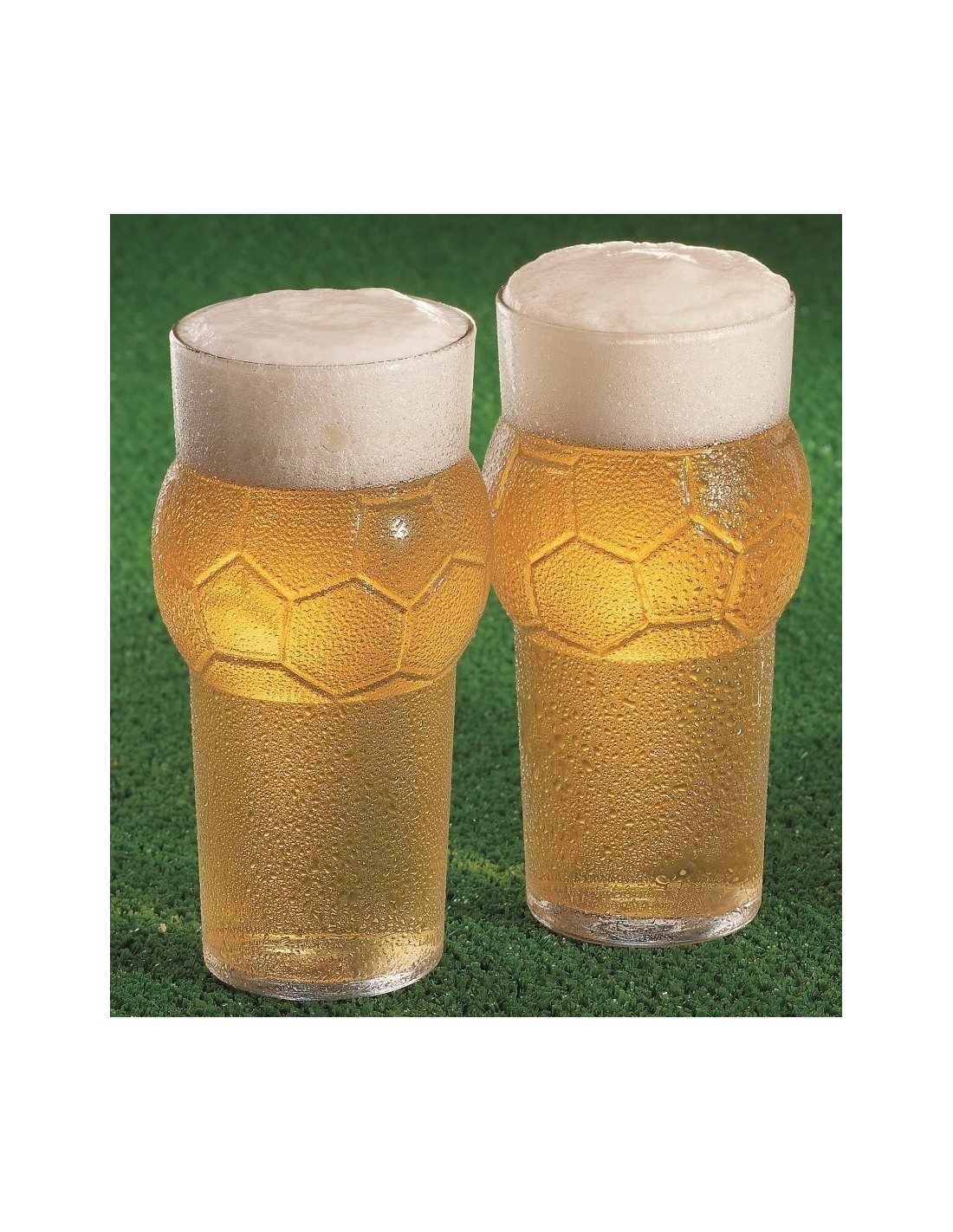 Bicchiere in vetro trasparente a forma di pallone da calcio misura cm. 8 X 16 e contiene 59 cl.