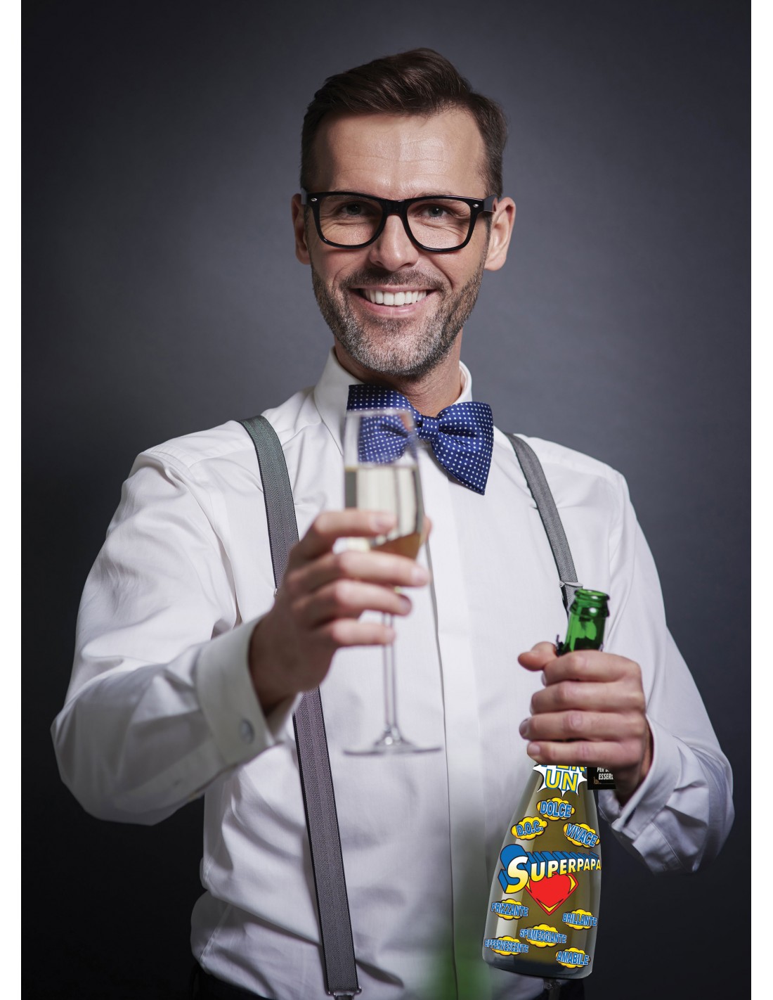 Per festeggiare in maniera spumeggiante, ecco una Bottiglia con la S maiuscola, non la classica bottiglia di vino ma la bottiglia per un SUPERPAPA'.