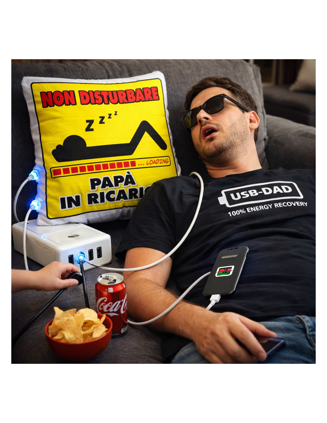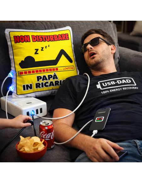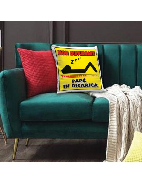Ecco il cuscino per il tuo Papà che ha bisogno di ricaricarsi, con la scritta NON DISTURBARE, un pensiero originale e divertente che verrà accolto sicuramente con un sorriso!
