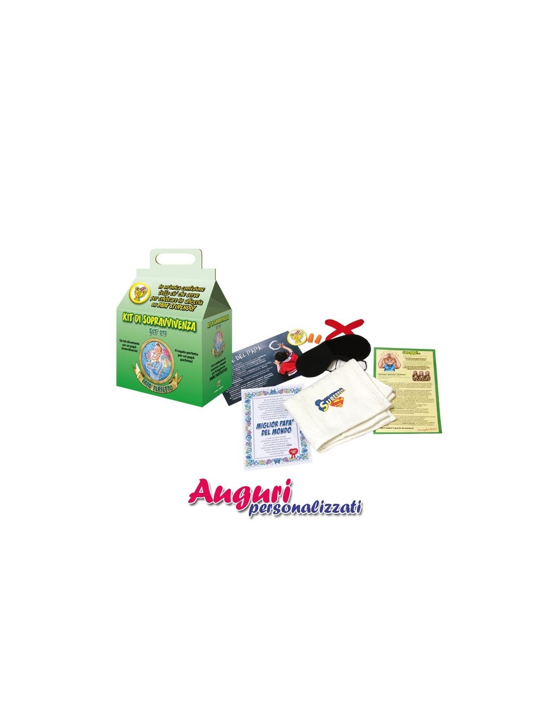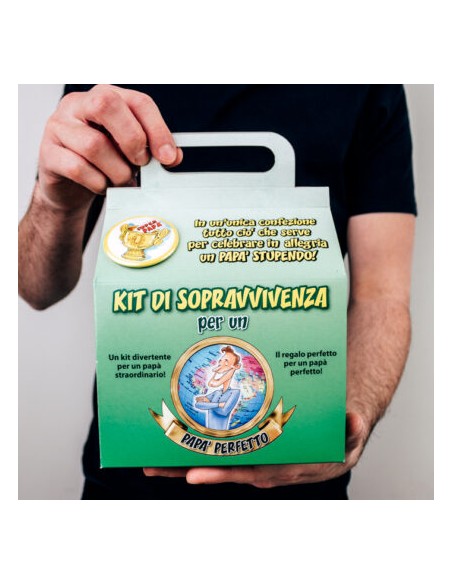 Ecco il nostro Kit di sopravvivenza per Papà, un contenitore pieno di piccoli gadget e oggetti spiritosi, ideato per portare buon umore in famiglia nel giorno della Festa del papà o del suo compleanno.