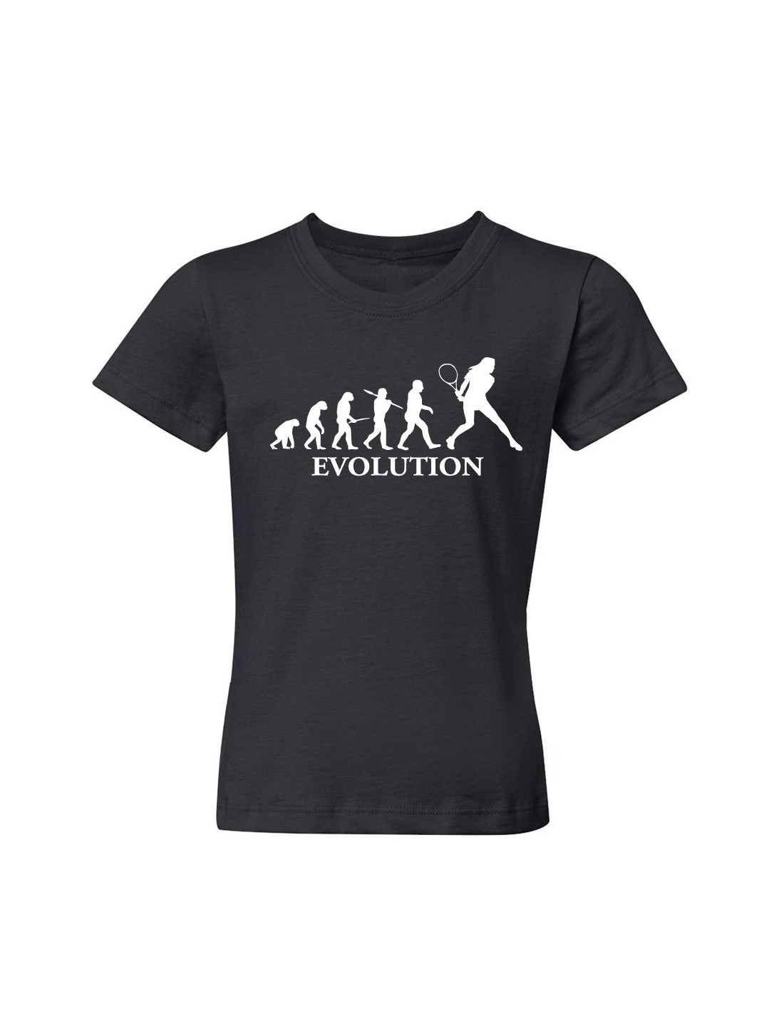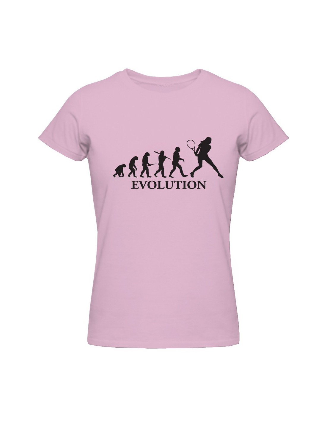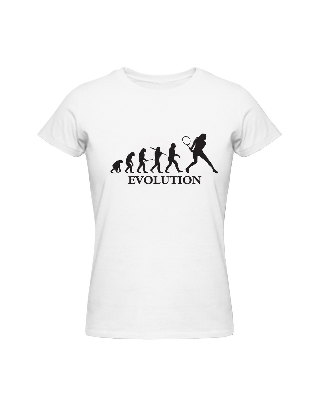 Se la racchetta è una passione imprescindibile, allora la t-shirt Evolution tennis versione femminile rappresenta sicuramente un indumento adatto a soddisfare le amanti di tale sport. Studiata appositamente per donne che adorano questa disciplina sportiva che come descritto dall'immagine stampata, hanno subito grazie a lunghi set di allenamento, l'evoluzione da Pallettare a vere Tenniste, dallo stile elegante e fascino sportivo. La maglia può essere un ottimo regalo da fare ad un'amica oppure a una parente, che riuscirai a far divertire con la simpatica figura presente nella parte anteriore.
