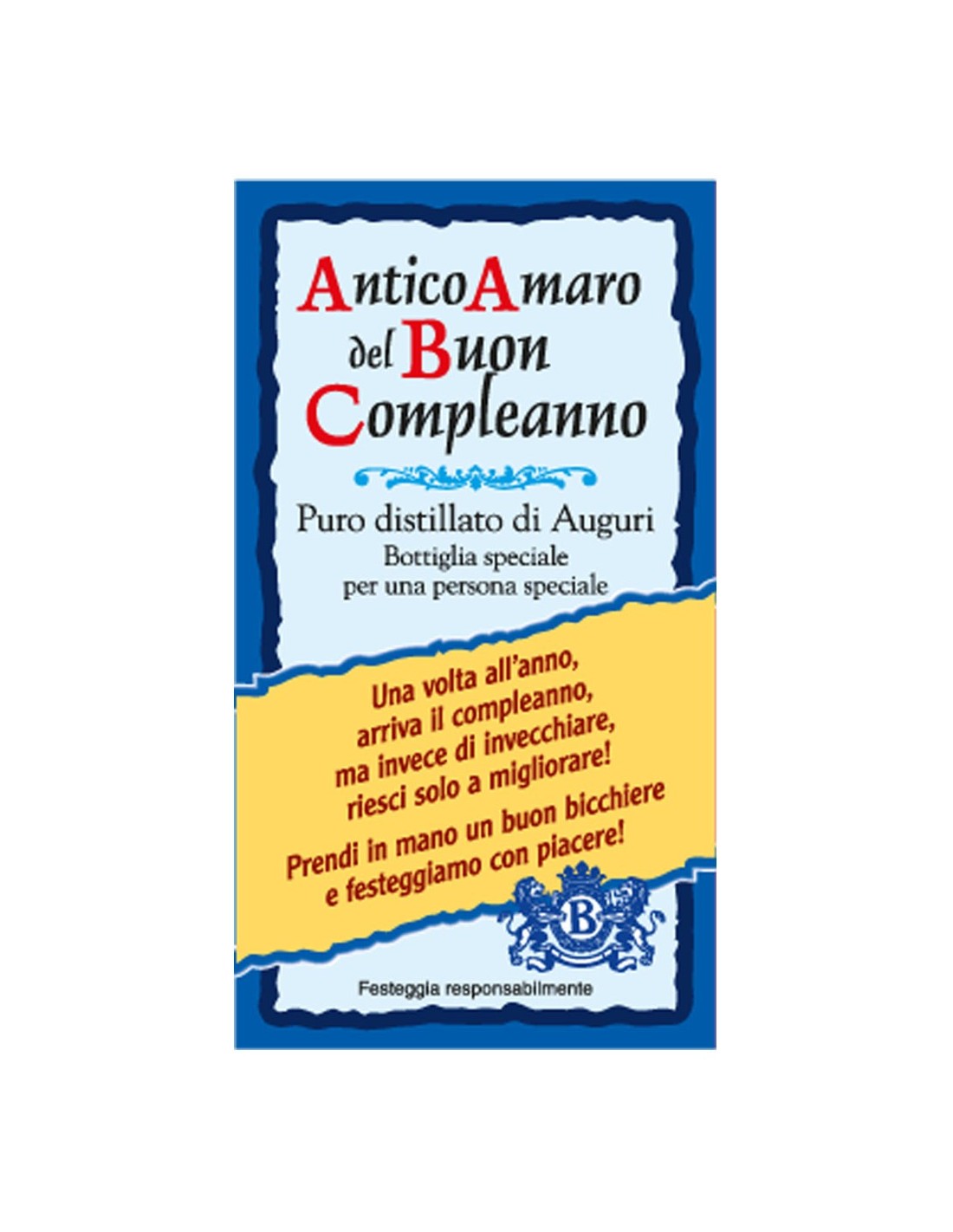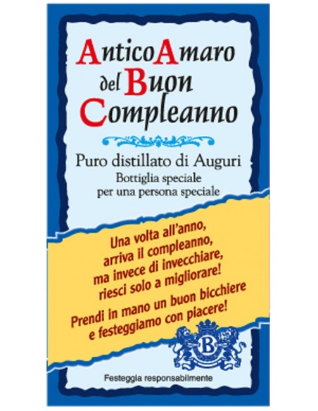 Con la maglietta inserita nella bottiglia dell'Antico Amaro del Buon Compleanno, farai sicuramente un figurone per l'originalita' del dono e l'ironia del messaggio augurale stampato sulla t-shirt