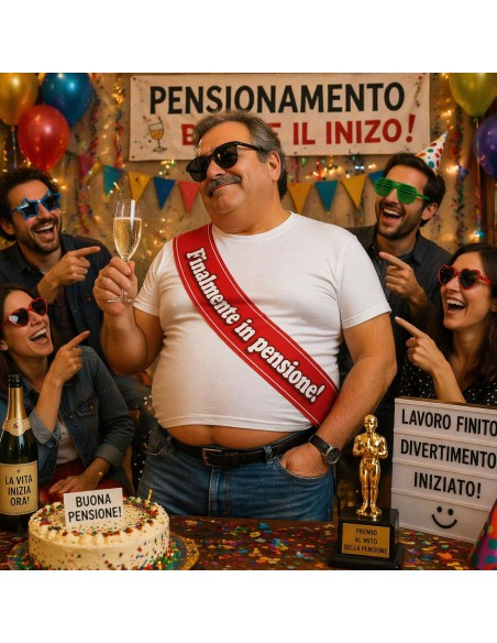 Fai indossare questa nuova divisa al/la Neo-Pensionato/a, cosi' da poterlo/a far riconoscere, con una punta d'invidia, a chi ancora dovra' aspettare molto a lungo il suo turno.