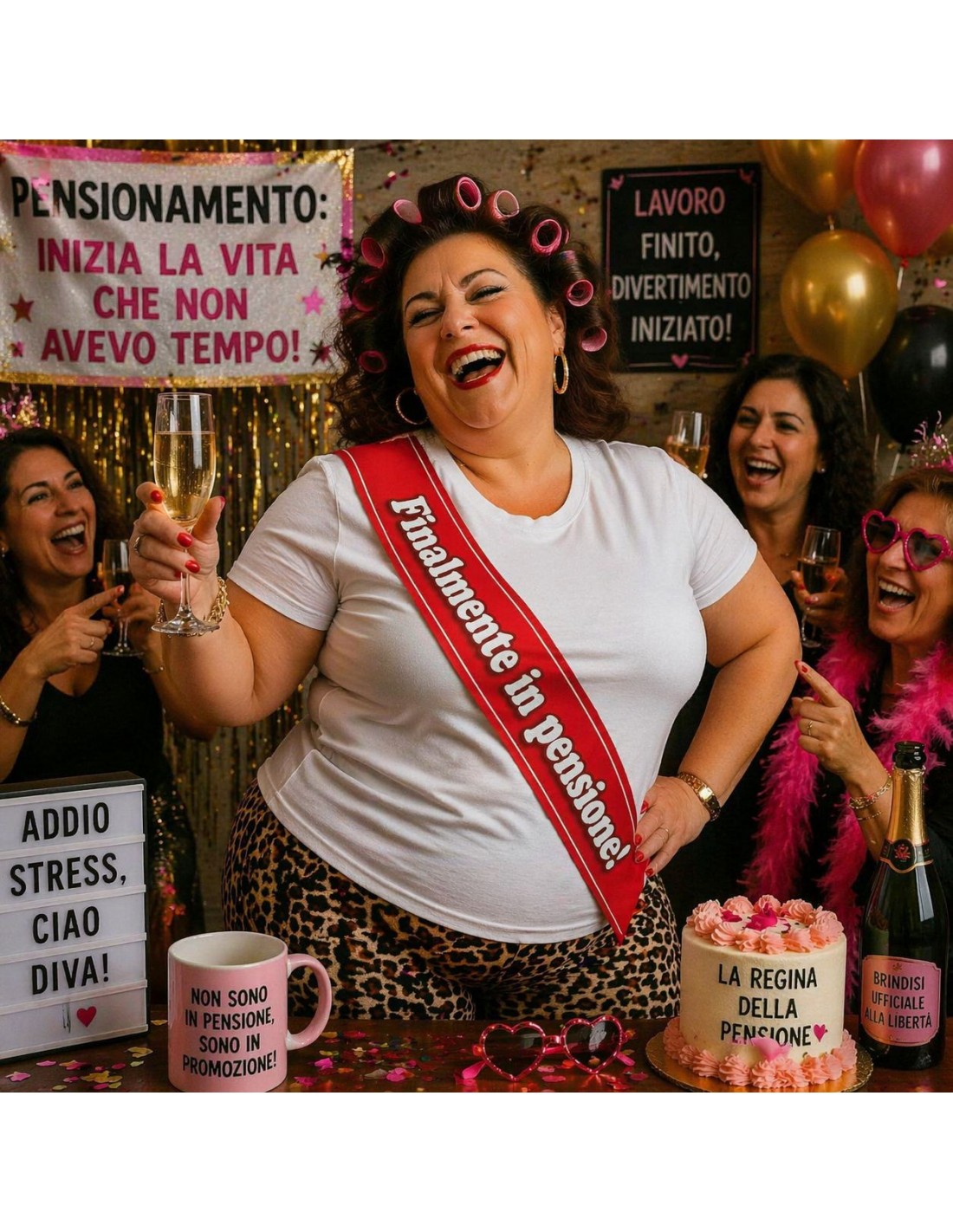 T-shirt bianca con stampata la fascia premio dedicata all'arrivo dell'agognata Pensione, l'idea regalo da donare ad un/una collega, all'amico o ad un/una parente, prima del grande traguardo che cambiera' la sua vita.