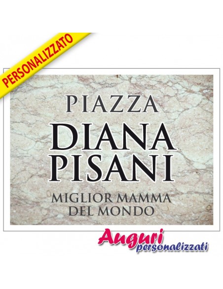 Cosa può esserci di più commemorativo e un po' commovente che intestare addirittura una Piazza alla Mamma, grande protagonista della vostra famiglia, dispensatrice di amore infinito, che tu non mancherai di precisare nella dedica personalizzata.
