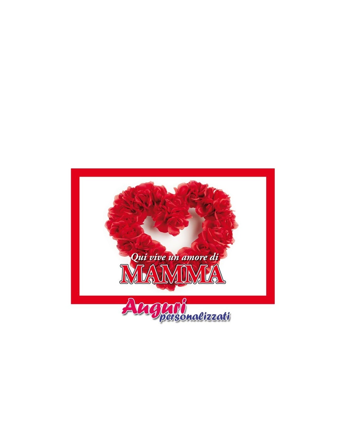 La bellissima e minuziosissima stampa riporta un cuore fatto di rose rosse e la dolcissima scritta "Qui vive un amore di mamma"